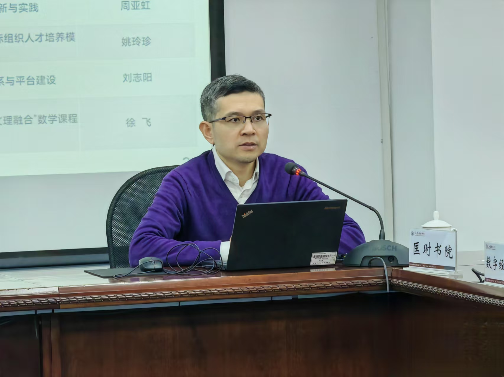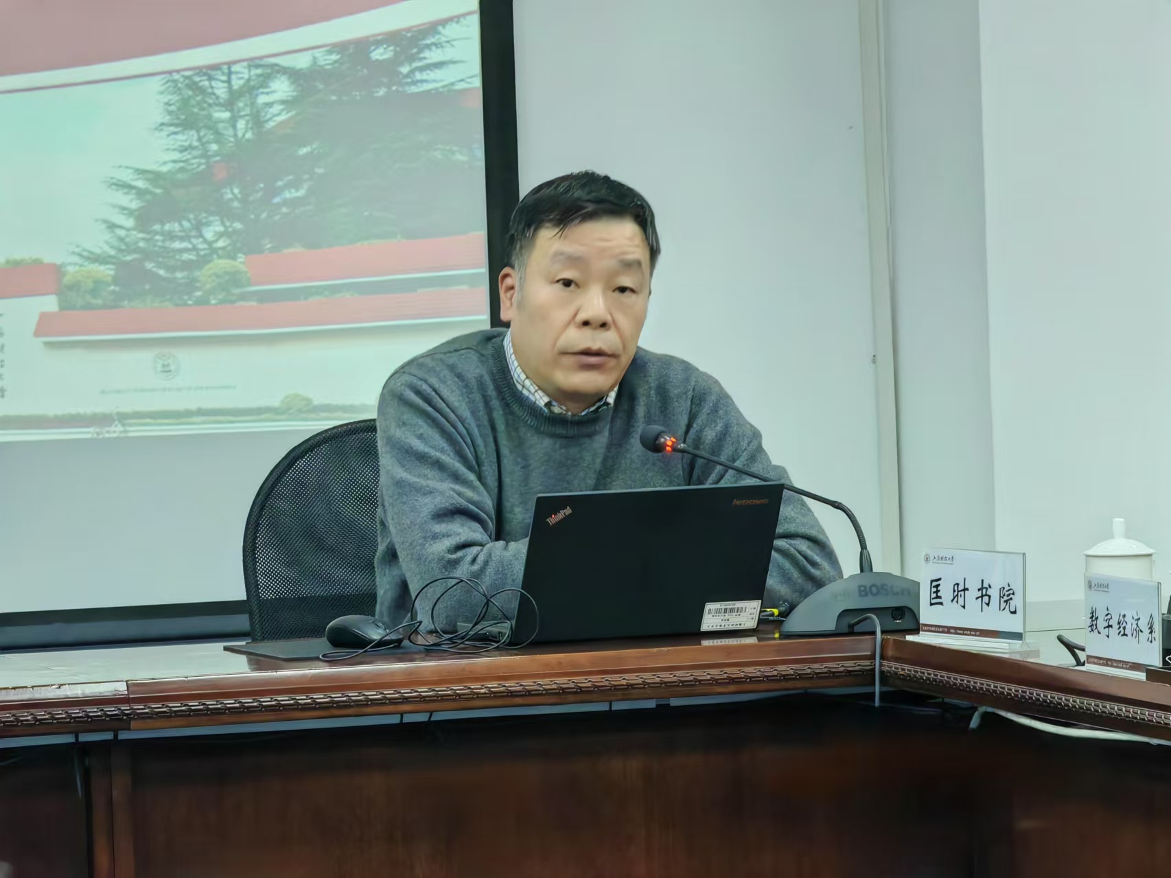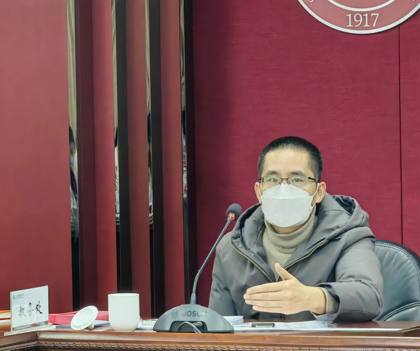 教务处江晓东副处长对专业与课程建设工作、通识教育工作进行了通报。他详细介绍了市一流课程的申报情况、校一流本科课程的认定进展,并针对课程建设工作提出了指导意见。在教材建设方面,他回顾了2024年建设情况,并对教学成果认定和教材审核等常规工作进行了安排。在通识教育工作方面,重点介绍了AI通识教育工作,此外完成了教研室工作手册编制和各教研室年度绩效全面总结,展示了教研室建设与运行的显著成效,并提醒各院系关注即将进行的教研室设置及调整工作。最后,他对2025年的重点工作进行了系统规划,包括新专业申报、AI课程建设、数字教材建设以及新文科建设等,扎扎实实推进本科教育教学改革实践。