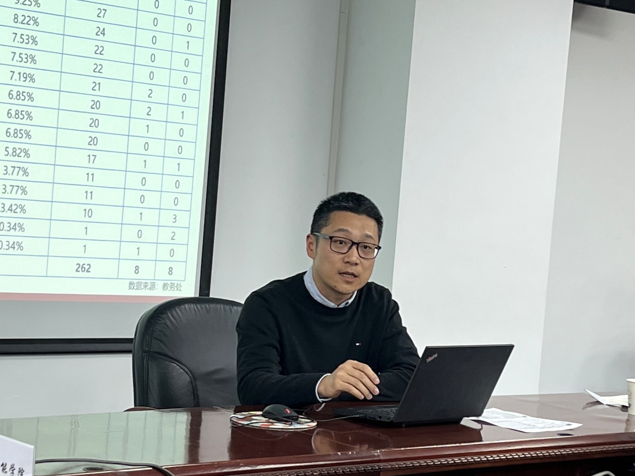 教务处吴纯杰副处长通报了教学运行与学籍管理工作。首先,他围绕期初教学工作准备、教学巡视、选退课工作、本学期开课情况、全英语课程申报等期初常规工作进行了汇报。本学期制订《学士学位授予专业授权自主审核工作管理办法》,以指导新增专业开展学士学位授予专业授权自主审核工作。接着,他就2025级专业培养方案的编制工作、毕业论文提质增效工作、规范教学档案、学生学业情况、推免工作等重点工作进行布置。2025级专业培养方案已完成优化调整,进一步完善了思政育人元素,并新增了人工智能通识课程,以适应新时代人才培养需求。在毕业论文方面,学校将持续加强质量提升举措。最后,他对培养计划编制、论文抽检、教学档案抽查、学业预警等工作注意事项进行提示,希望大家以饱满的热情和严谨的态度投入到本学期的各项工作中,确保教学工作稳步前行。