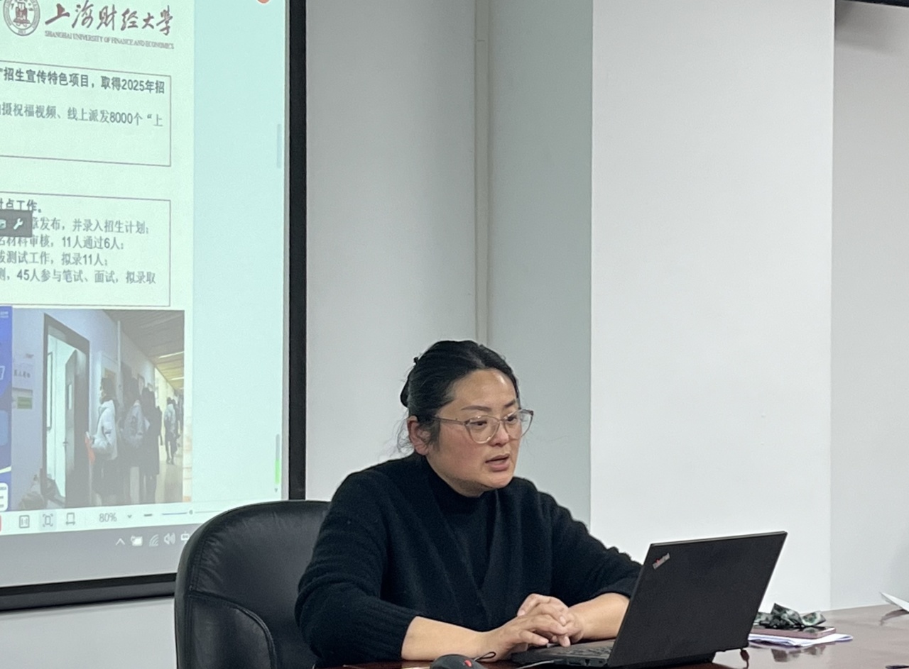 招生就业处汤玲莉副处长通报本科招生工作。寒假期间,学校顺利开展了第12届“情牵母校 相约上财”宣讲活动,并推出“我要上上财”特色项目,取得良好宣传效果。同时,常规宣传工作持续推进,部分专项招生工作也顺利完成。新学期,学校将扩大本科招生计划,新增的计划均面向国家急需的前沿技术和新兴业态,培养服务国家战略需求与社会发展需要的紧缺人才。