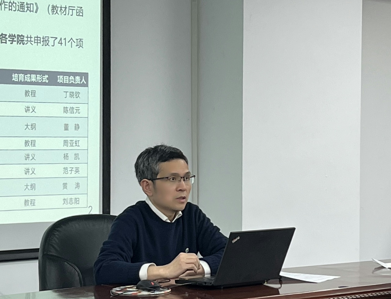 教务处江晓东副处长对专业与课程建设工作、通识教育工作进行了通报。他首先汇报了教材建设、课程建设、教学成果与教材审核方面等近期工作情况,并对相关后续工作进行了布置。未来工作安排包括教育部相关工作推进、市级教学相关工作如重点课程结项与申报、教学成果奖申报等,以及校级教学类相关工作如本科一流课程认定、数字教材建设等。此外,学校将于今年启动2025年新专业申报工作,为学科发展注入新的活力。接着,他对通识教育中心工作进行了介绍。为积极响应国家教育数字化战略行动,学校将智能素养融入人才培养体系,计划新建一批高质量“AI+”数智力课程,全面推进人工智能通识课程体系的构建。此外,学校还将进一步优化教研室建设。一方面,完成教研室的设置及调整工作,确保其高效运行;另一方面,继续拨付教研室运行经费,为教研室的建设和发展提供坚实保障,充分激发教研活力。