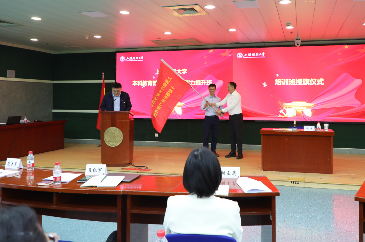 许涛书记为提升班班长夏纪军处长授班旗,激励全体学员勇于担当、传承使命,顺利完成本次培训各项课程并达到培训效果,预祝审核评估工作圆满成功。