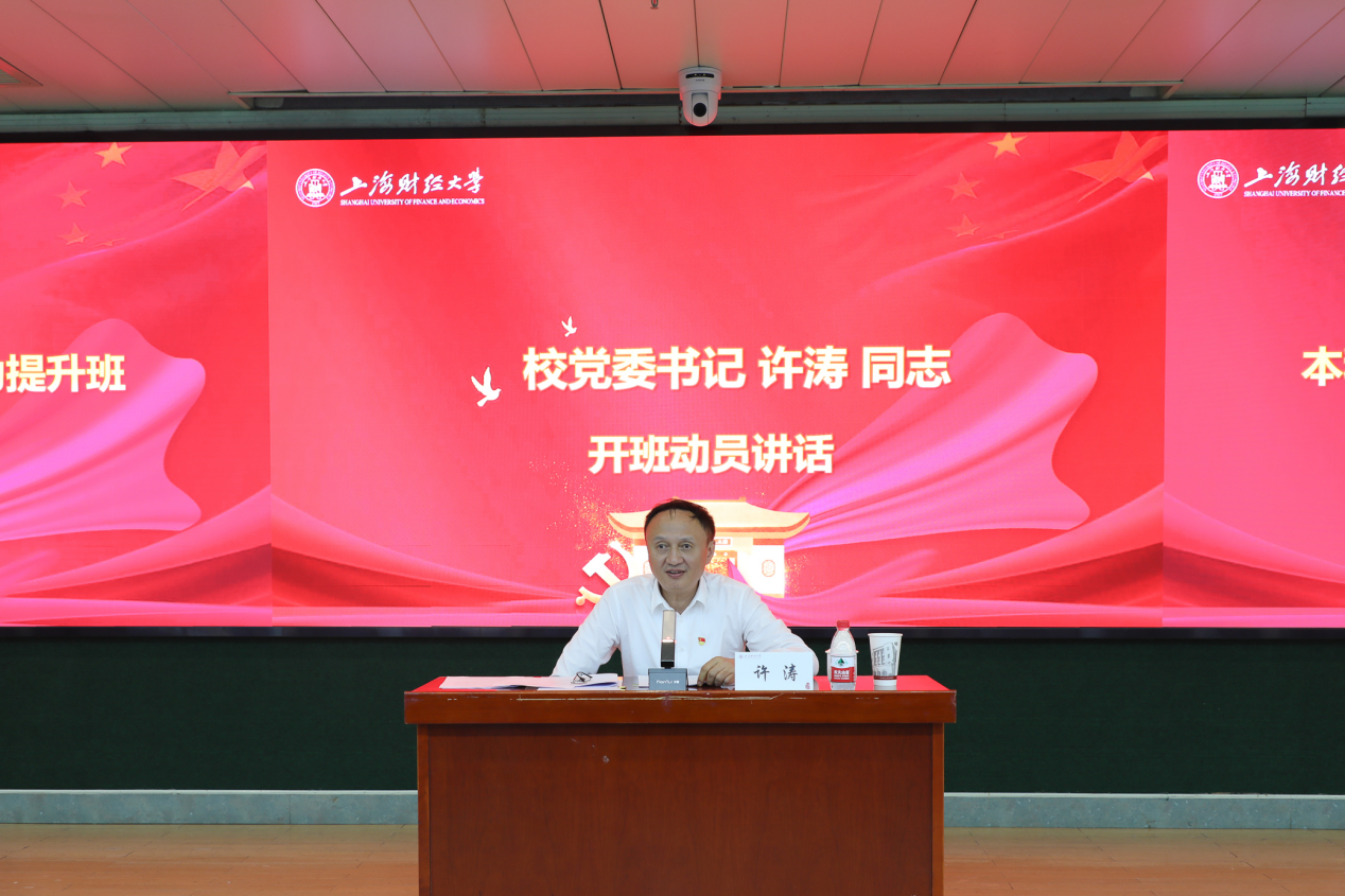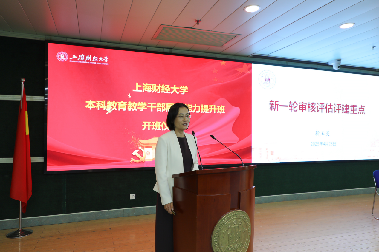 在动员讲话环节,许涛书记讲到,举办本次本科教育教学干部履职能力提升班恰逢其时,希望学员们高度重视和珍惜本次培训机会,以认真务实的态度投入学习,在学思践悟中增长本领,切实将培训所学转化为推进本科教育教学改革的实际行动。从国家层面看,教育是国之大计、党之大计,审核评估是教育部对高校人才培养质量进行全面检验的重要手段,是推动高校内涵式发展的关键举措。作为一类参评高校,我们肩负着更高的使命与责任。新一轮审核评估既是对我校办学水平的全面检验,更是推动高质量发展的重大机遇。许书记回顾了上一次审核评估中发现的典型案例,为学员们开展警示教育,希望大家高度重视本次审核评估工作,参评过程和结果将纳入学校相关年终绩效考评。希望大家以“同题共答”的担当,学以致用,高质量的完成各项评估工作,将评估要求转化为育人实效,为建设教育强国贡献上财的智慧和力量。